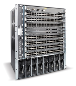 Large scale chassis-based switch delivering high density aggregation for medium-sized data centers. |